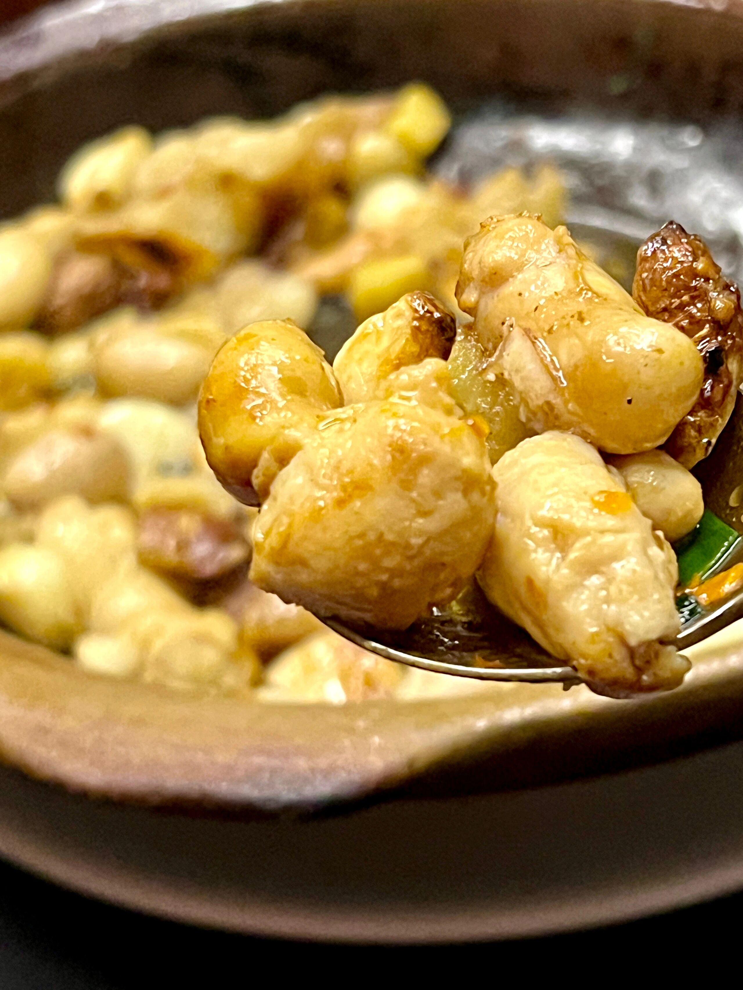这里主打清远菜,所以就不是葵花鸡葵香鸡了,而是清远鸡,但广东人吃鸡,永远是姜蓉蘸料为主,这份姜蓉有多好吃?拿来拌清远红皮小花生也是极好的。这个做法,要学。