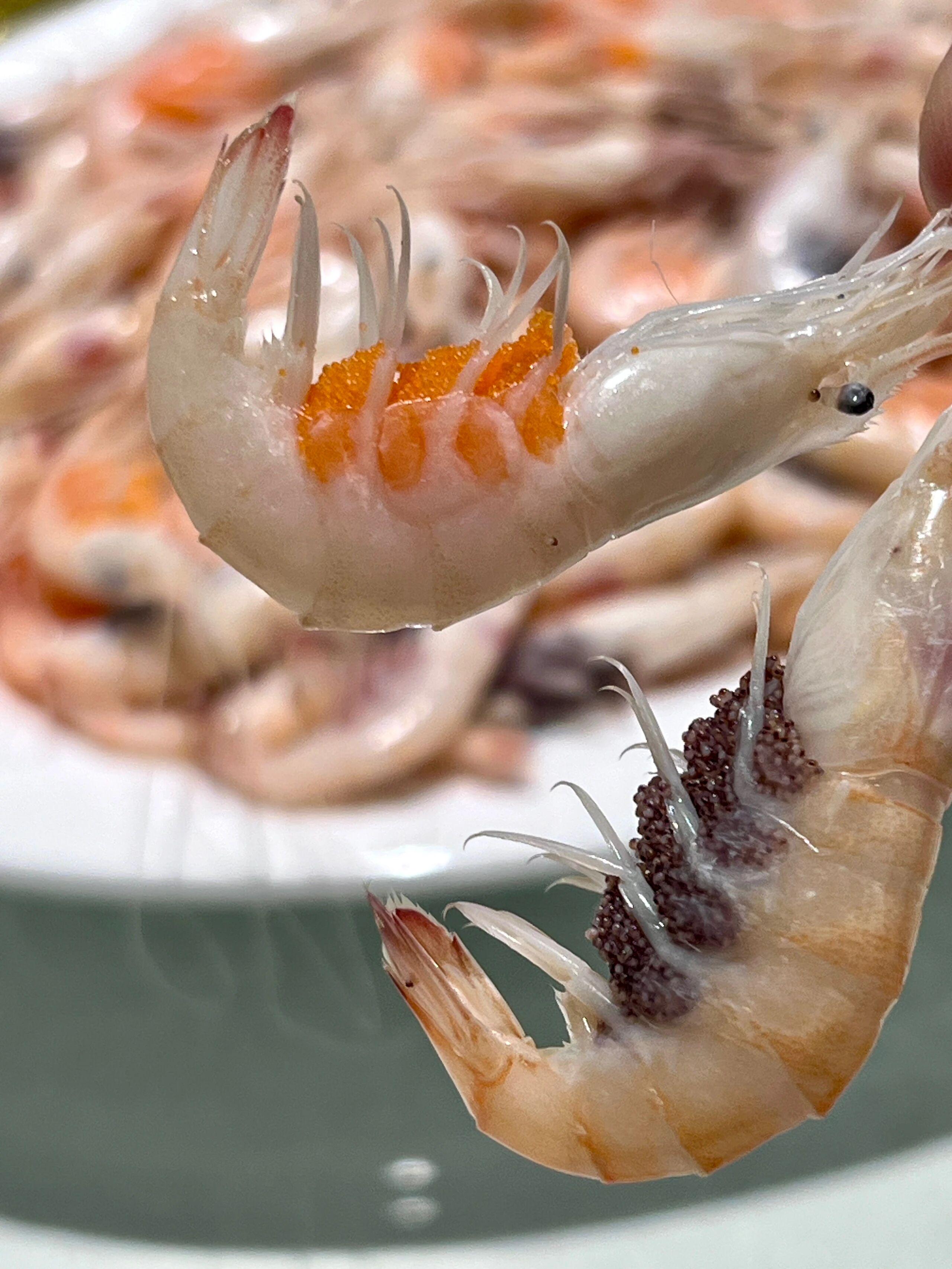 从 大哥餐厅到佬佬餐厅,容太安排的菜一直精彩,比如一餐吃了三种虾,各有各的妙:咸淡水交界处的带籽白虾,白灼了配香槟开胃;山黄鸡汤后上了盘彩尾竹节虾,虾尾去壳烤、虾头椒盐炸,一吃一个不吱声,吱吱下酒;本港小青龙的虾尾用豉椒炒,虾头虾爪葱姜炒,都太容易下酒了!
