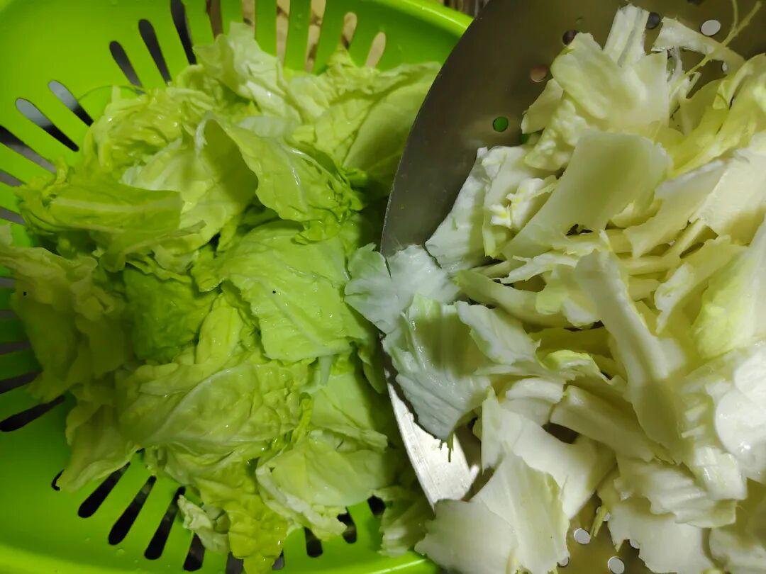 第一步,把食材给准备好。喜欢吃肉的可以多放,白菜建议用叶多点的更好吃